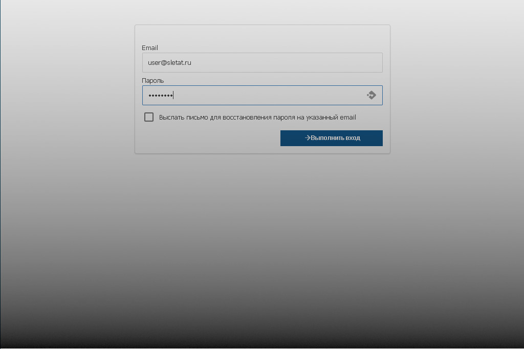 Для входа в Веб версию используйте полный адрес почты формата user@sletat.ru